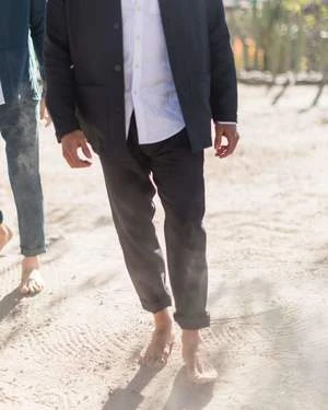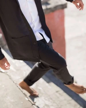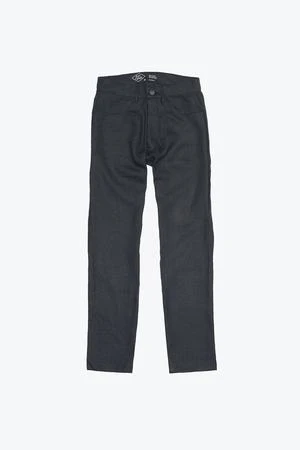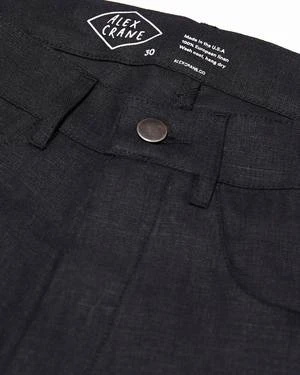 Black linen jeans. Made in Los Angeles from washed European linen and corozo buttons.