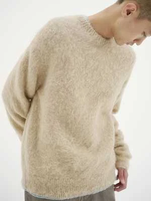 A recent AURALEE autumn winter classic, this knit is made of soft South African super-kid mohair spun into a loosely twist yarn, with a natural-fiber wool core.