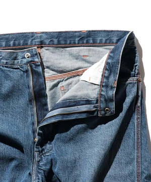 Uses 12oz denim. Because it is woven using uneven threads both vertically and horizontally, the fabric has an uneven feel, and by adjusting the number of warp threads, it is made soft.