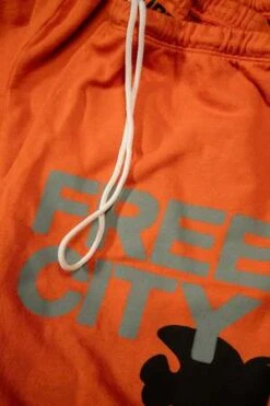 Two types of stitching thread are used: faded orange to match the fabric and white for a clear contrast.