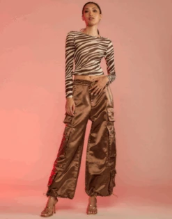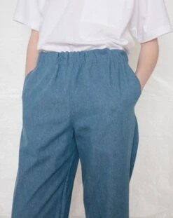 Features a loose hip and waist and a gentle taper to the hem. The silhouette is typical of work pants.
