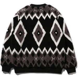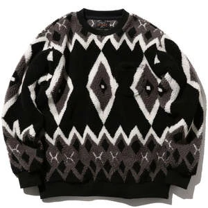 Beams PlusJacquard Boa Fleece Crew Neck – Black/Grey