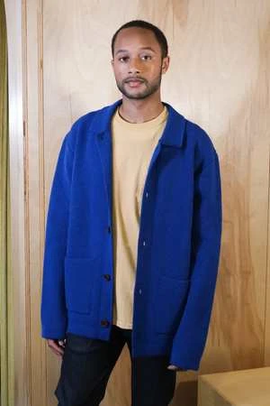 The classic chore coat reimagined from Country of Origin. This knitted chore coat features a classic collar, front patch pockets, and a five-button placket finished with corozo nut buttons. Knitted in 7 gauge with a sturdy half-milano stitch, from supersoft lambswool. Hand-linked by highly skilled technicians.