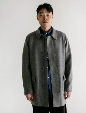 The Country short coat comes streamlined and equipped to be your daily driver to work or leisure. Produced from 100% pressed dark melange wool, a dense knit with felt-like quality and ample warmth for the cooler months. The jacket is constructed with minimal details in mind