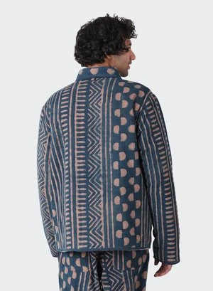 This hand block print jacket is in collaboration with ANOKHI, the masters of block printing, who almost single-handedly revived this traditional textile printing practice and the livelihoods of block printing communities in Rajasthan since the 1970s. The technique involves the meticulous precision of hand stamping a motif onto the fabric using a wooden block. It’s a skill, often passed down through the generations, that requires patience and precision.