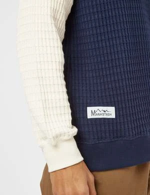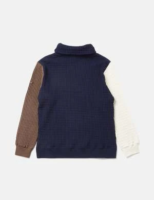 With a unique multi-colour design, this piece has an all-over waffle-like texture, with a high roll neck, ribbed cuffs and hem and Manastash branded patch.