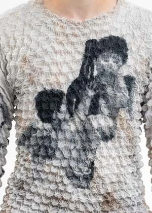 Lightweight marriage popcorn sweatshirt in light grey, from MASU. Features a spiked paneled construction with tonal printed text and graphics. Tonal stitching throughout.