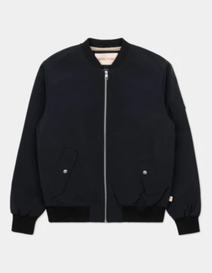 A regular fit bomber jacket made from a recycled polyester fabric with a comfortable stretch.