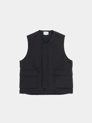 The Still By Hand Large Pocket Padded Vest in Ink Black is the newest version of the brand’s well-loved insulated vests, constructed from a water-repellant polyester exterior with Thinsulate soft touch fill for lightweight, packable warmth. The Padded Vest features a boxy cut with no side seams, snap front, and two large cargo flap pockets. Its clean, minimal design and roomy fit make it the perfect layering piece for cooler weather.