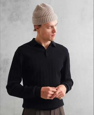The Oban Polo returns in a cotton blend knitted engineered rib.